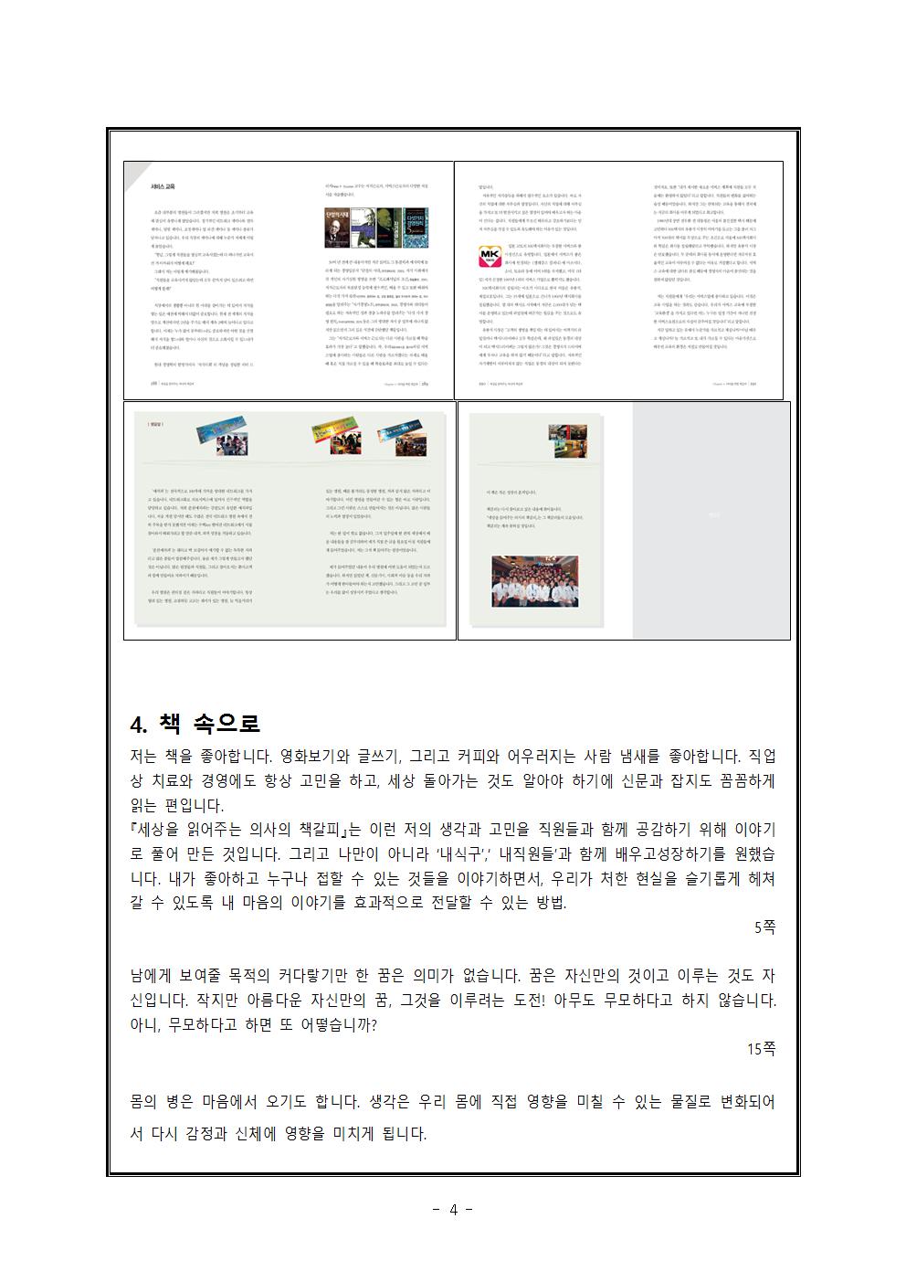 보도자료 세상을 읽어주는 의사의 책갈피. 2011. 김동석. (13320) by <辛禧宙> 2021. 3. 1. 공유하기 게시글 관리 글과생각 관련글 스테가노 그래피: 숨겨진 메시지. 2012. 김주원. (03560) 내 인생에 멘토가 되어 준 한마디. 2012. 양광모. (03040) 촌놈의 도전. 2011. 김석준. (03040) 이짱:넌 몸짱이니? 나는 이짱이야!. 2011. 김동석. (03510) 댓글