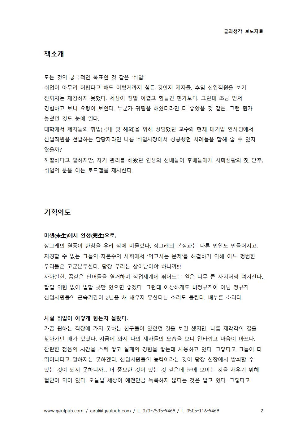 까칠한 3인의 멘토가 말하는 취업 : 미생(未生)에서 완생(完生)으로. 2015. 김종춘 방준식 이정연. (13320)