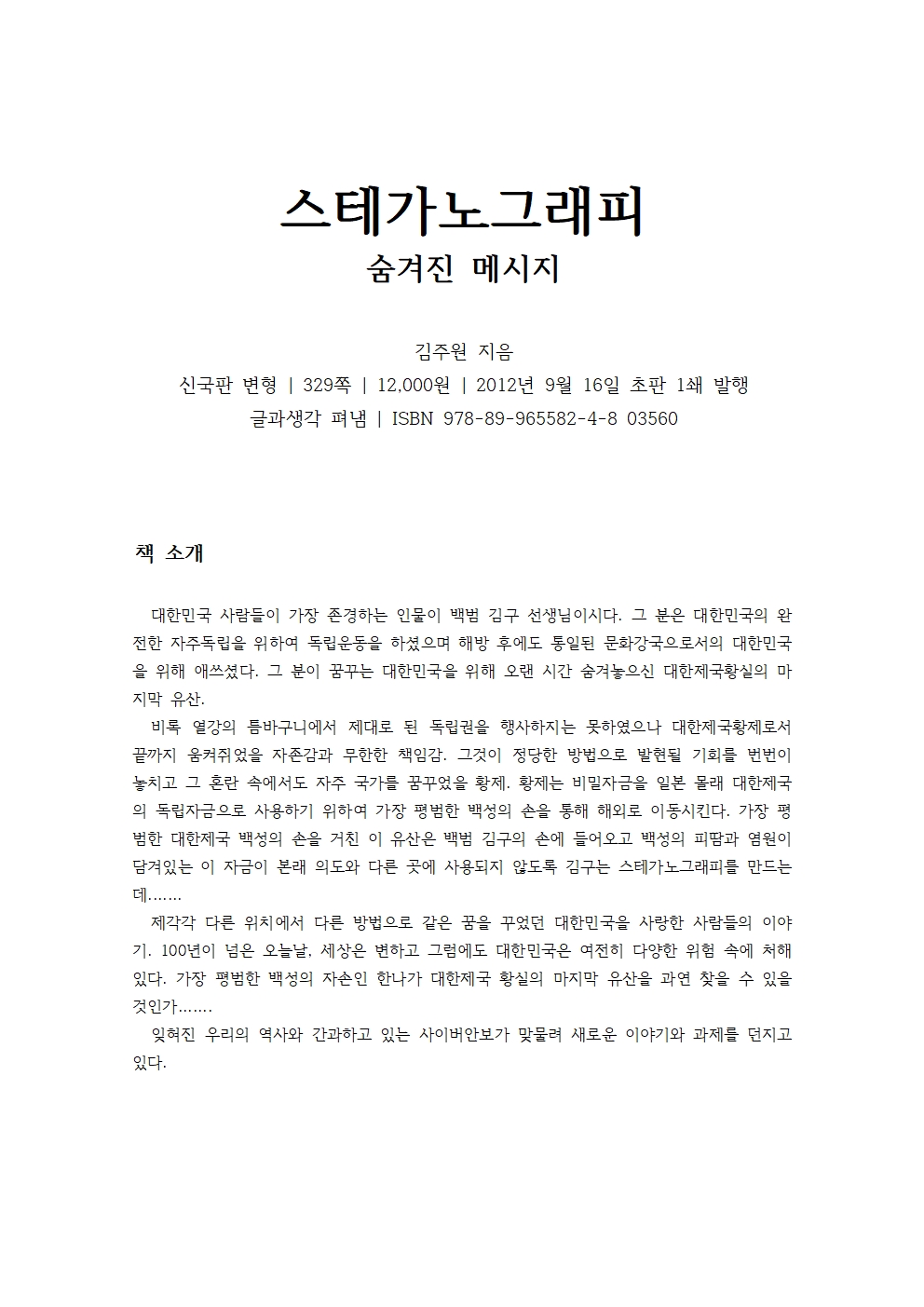 스테가노 그래피: 숨겨진 메시지. 2012. 김주원. (03560)